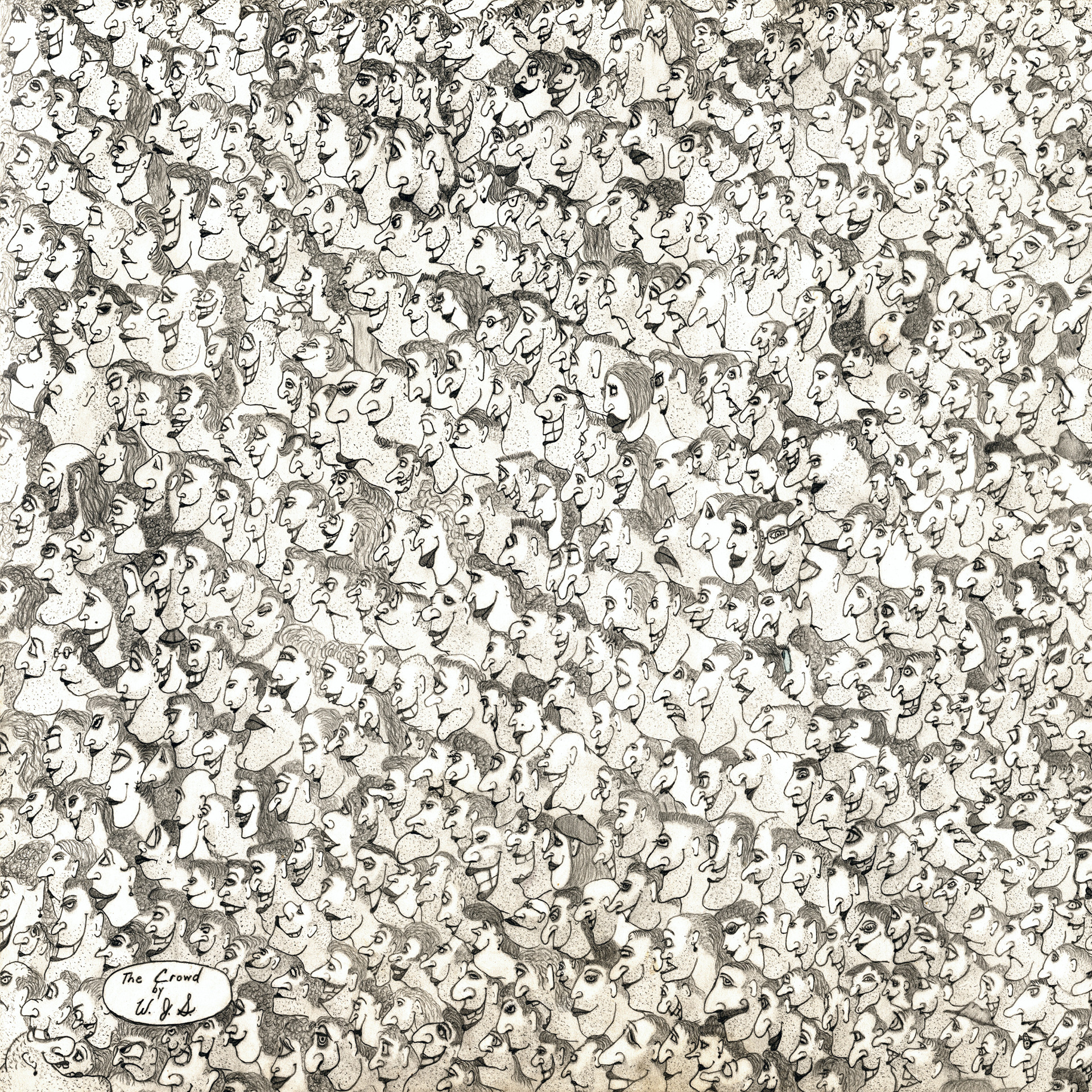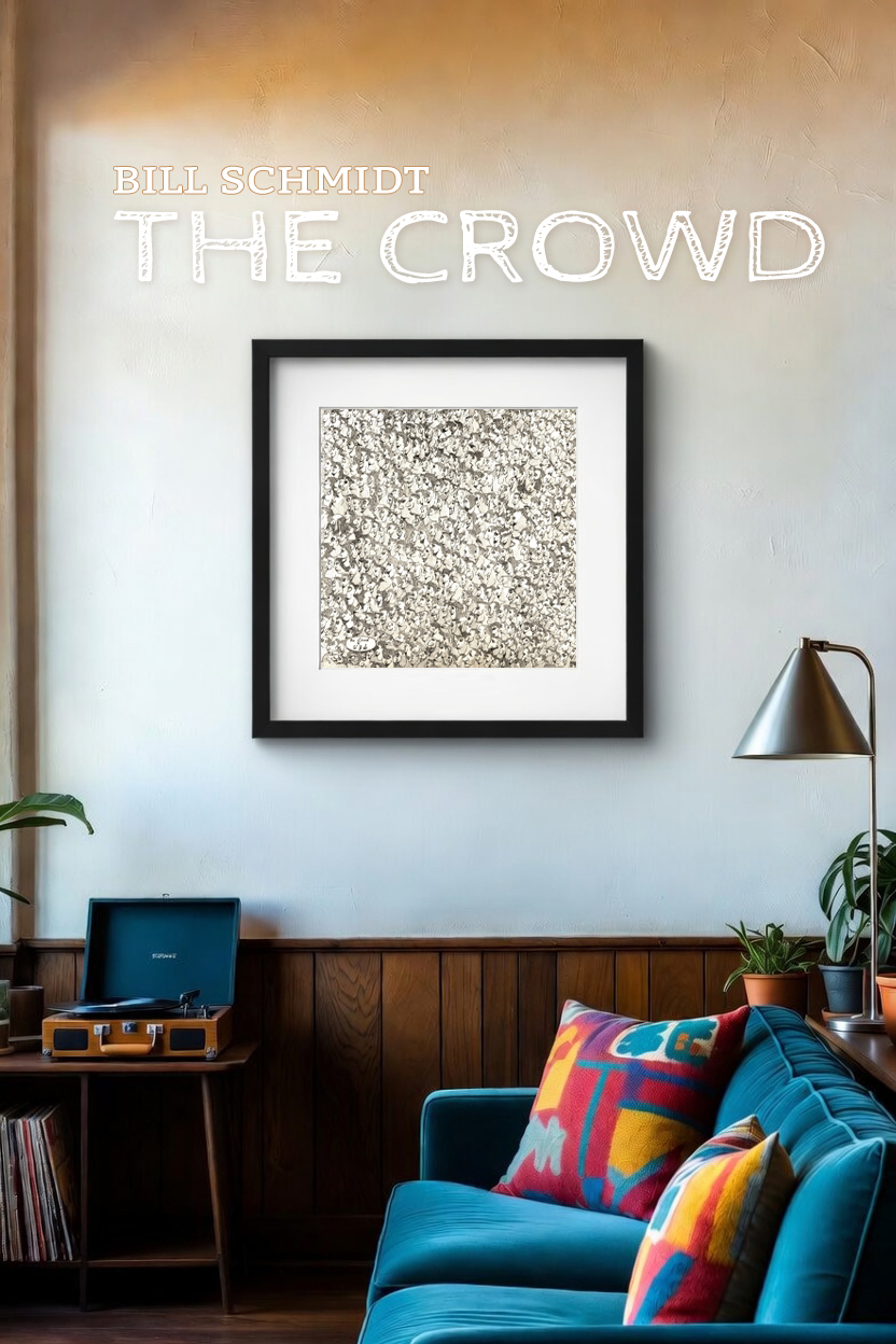 "When you're having a bad day, join THE CROWD... and smile!" Bill Schmidt's modern Mid-century Modern classic is amazing at a distance or up close, with a face in the sea anyone can identify with. Don't miss out on this one-of-a-kind print.